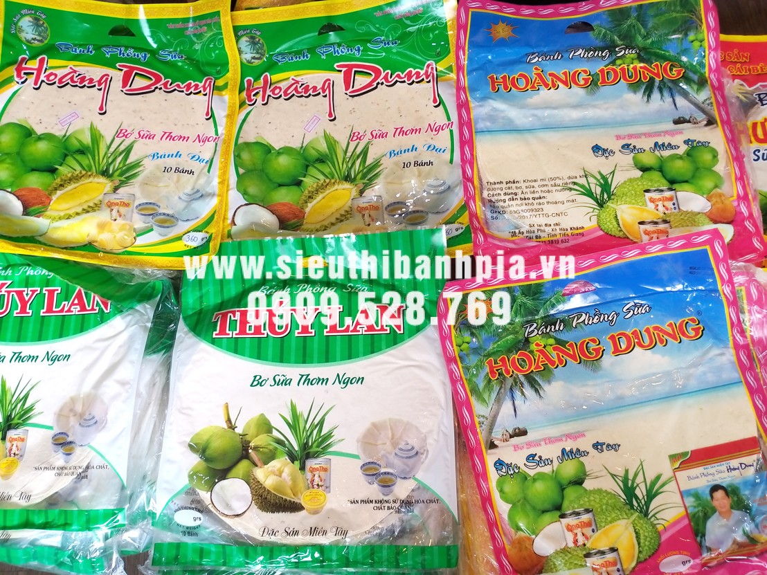 Bánh tráng sữa ngày nay được sản xuất nhiều ở các tỉnh miền tây, mang nhiều thương hiệu khác nhau nhưng nổi tiếng và được yêu thích nhất đó chính là “Bánh Tráng Sữa Hoàng Dung” tại Tiền Giang với hơn 30 năm trong nghề làm bánh tráng sữa gia truyền tạo nên chiếc bánh đặc sản mang nhiều hương vị khác nhau đến người dùng: lá dứa, bánh tráng mè, bánh tráng sữa béo và ngon nhất đó chính là bánh tráng sữa sầu riêng đặc biệt